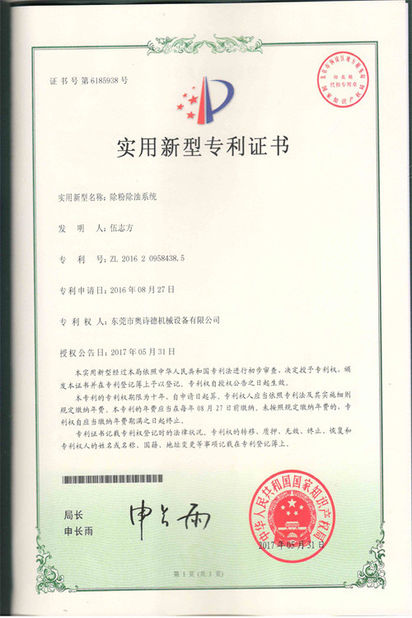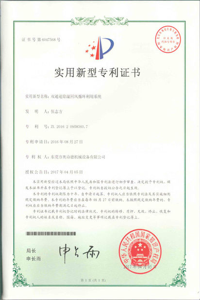 Standard:Patent Certificate 5 Number:ZL201620962681.4 Issue Date:2017-04-12 Expiry Date:2067-04-12 Scope/Range:OHD-O Series Issued By:China National Intellectual Property Administration |