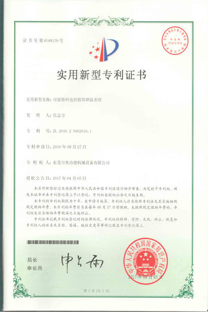 Standard:Patent Certificate 2 Number:ZL201620958438.5 Issue Date:2017-05-31 Expiry Date:2067-05-31 Scope/Range:OCD-H Series Issued By:China National Intellectual Property Administration |