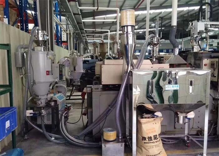 The plastic resin is loaded by the vacuum loader to the drying hopper, after drying, the dried resin is loaded to the feeding port of the molding machine. It's suitable for normal plastic resin drying, not suitable for hygroscopic resin drying. For drying of hygroscopic plastic granules, low dew-point dehumidifying dryers are needed for drying.